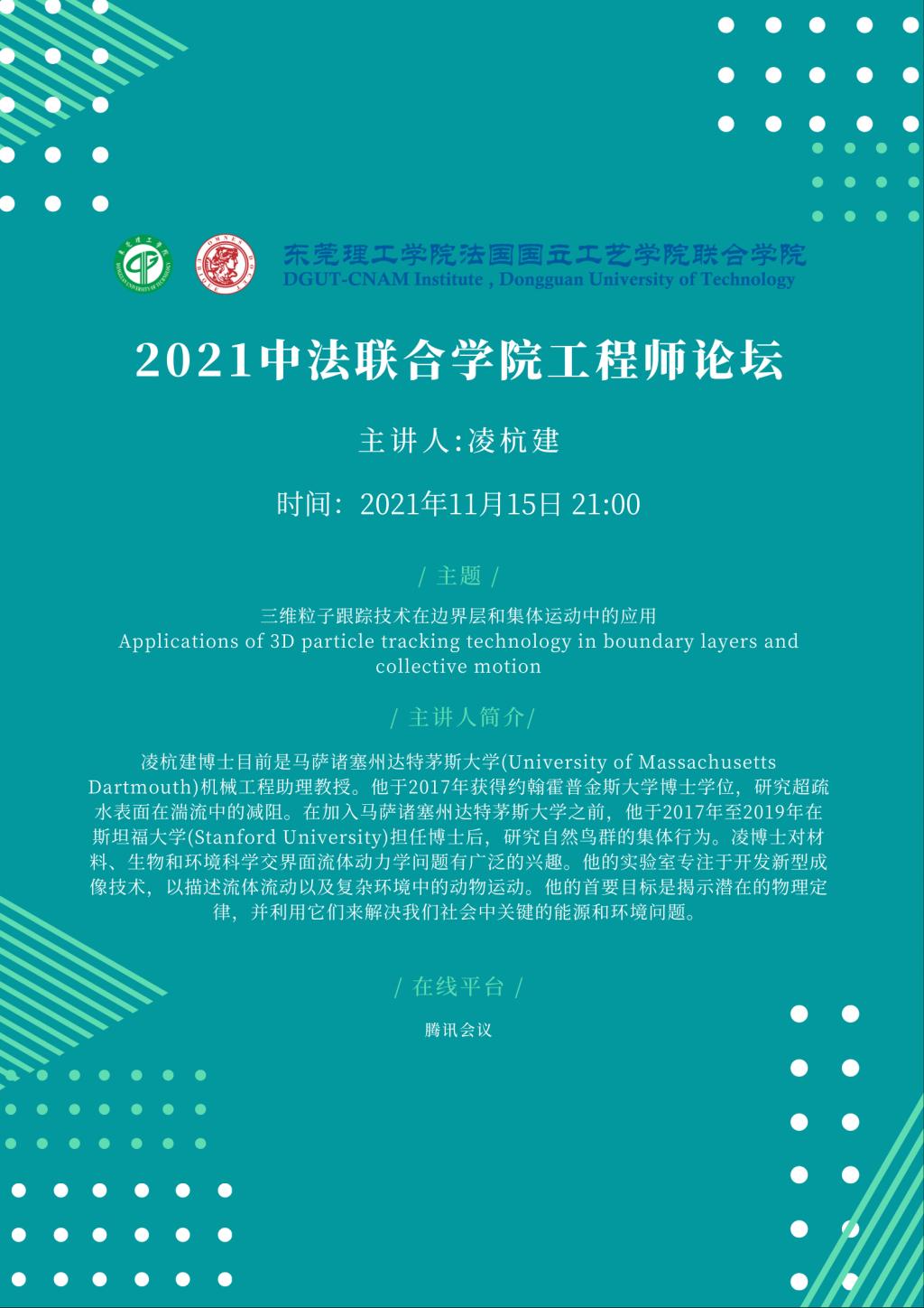 1、凌杭建博士为学生开设《三维粒子跟踪技术在边界层和集体运动中的应用》主题讲座。凌杭建博士目前是马萨诸塞州达特茅斯大学(University of Massachusetts Dartmouth)机械工程助理教授。他于2017年获得约翰霍普金斯大学博士学位,研究超疏水表面在湍流中的减阻。在加入马萨诸塞州达特茅斯大学之前,他于2017年至2019年在斯坦福大学(Stanford University)担任博士后,研究自然鸟群的集体行为。凌博士对材料、生物和环境科学交界面流体动力学问题有广泛的兴趣。他的实验室专注于开发新型成像技术,以描述流体流动以及复杂环境中的动物运动。他的首要目标是揭示潜在的物理定律,并利用它们来解决我们社会中关键的能源和环境问题。
