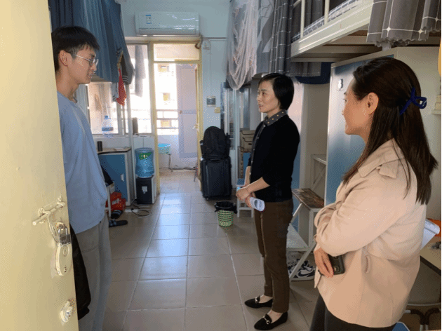 在学生宿舍,学生们以昂扬的斗志开启了新学期的学习。老师们与学生亲切交流,了解学习生活情况,做好违规电器等社区安全提醒、反诈提醒,以及开学考试、教学安排调整等提醒。勉励学生在新学期里勇于超越探索,奋发图强,不负青春韶华。