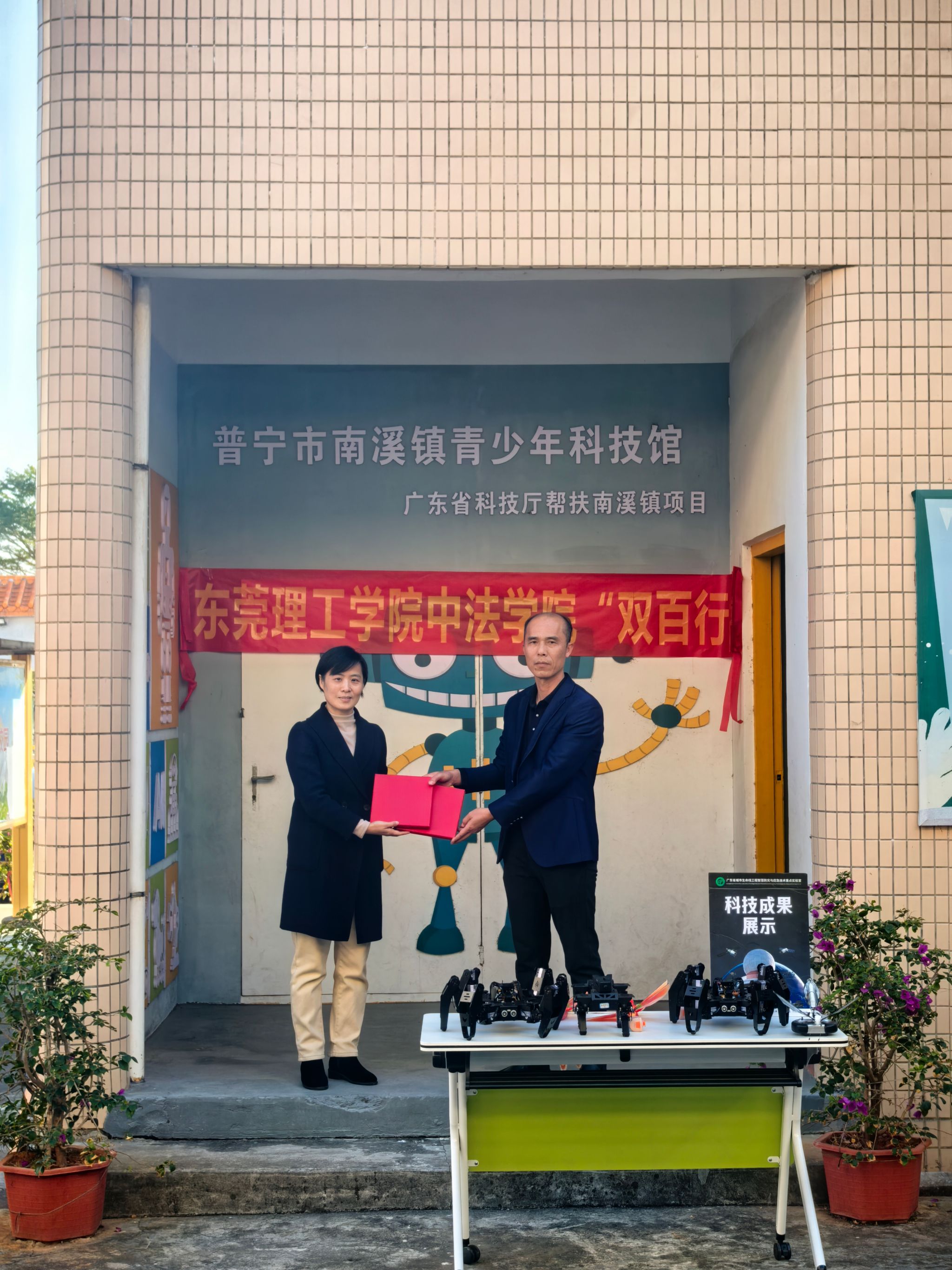 12月30日下午,sunbet官网联合广东省城市生命线工程智慧防灾与应急技术重点实验室、东莞理工学院科技创新研究院走进普宁市篮兜小学开展“双百行动送科普”活动,将集科学性、知识性、趣味性于一体的“科普大餐”送给篮兜小学的孩子们。本次活动学院副院长尹玲带队,林伟铖、王熠老师和陈昌耀同学共同前往,开展关于“仿生机器人科普”为主题的科普活动,受到篮兜小学领导、老师和孩子们的热烈欢迎。