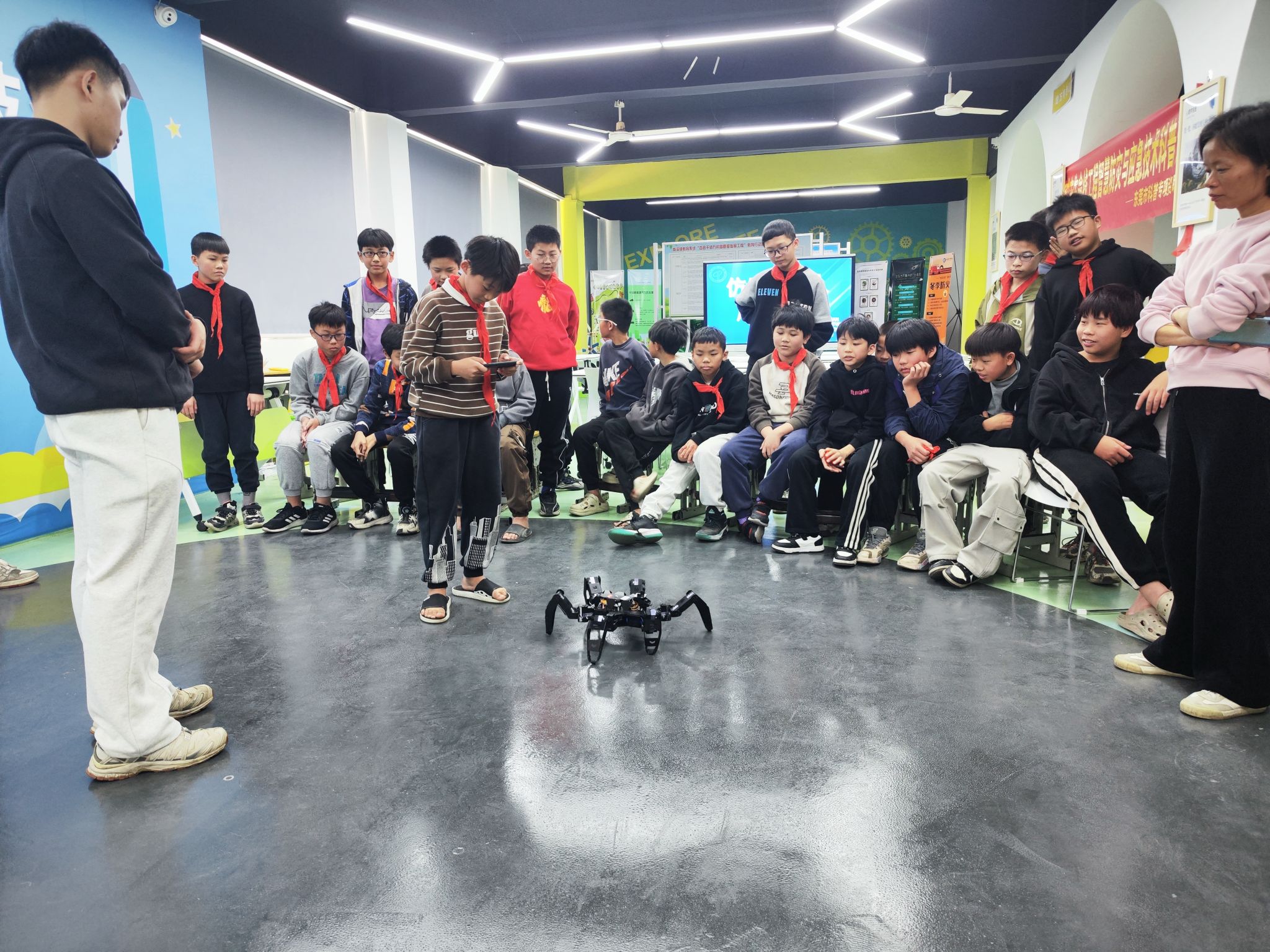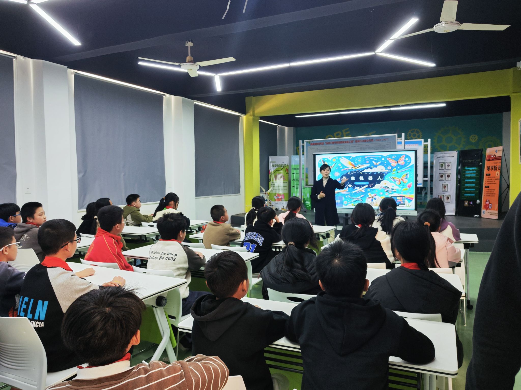 活动在副院长尹玲与孩子们的亲切引导与互动中拉开序幕,林伟铖老师为孩子们讲述了一堂生动有趣的“仿生机器人”知识课。
