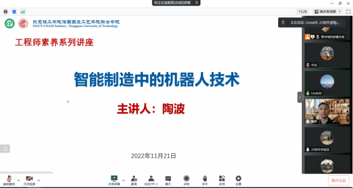 11月21日晚,东莞理工学院法国国立工艺学院联合学院邀请华中科技大学机械科学与工程学院的陶波教授为我院学生开展了以“智能制造中的机器人技术”为主题的工程师素养系列讲座。
