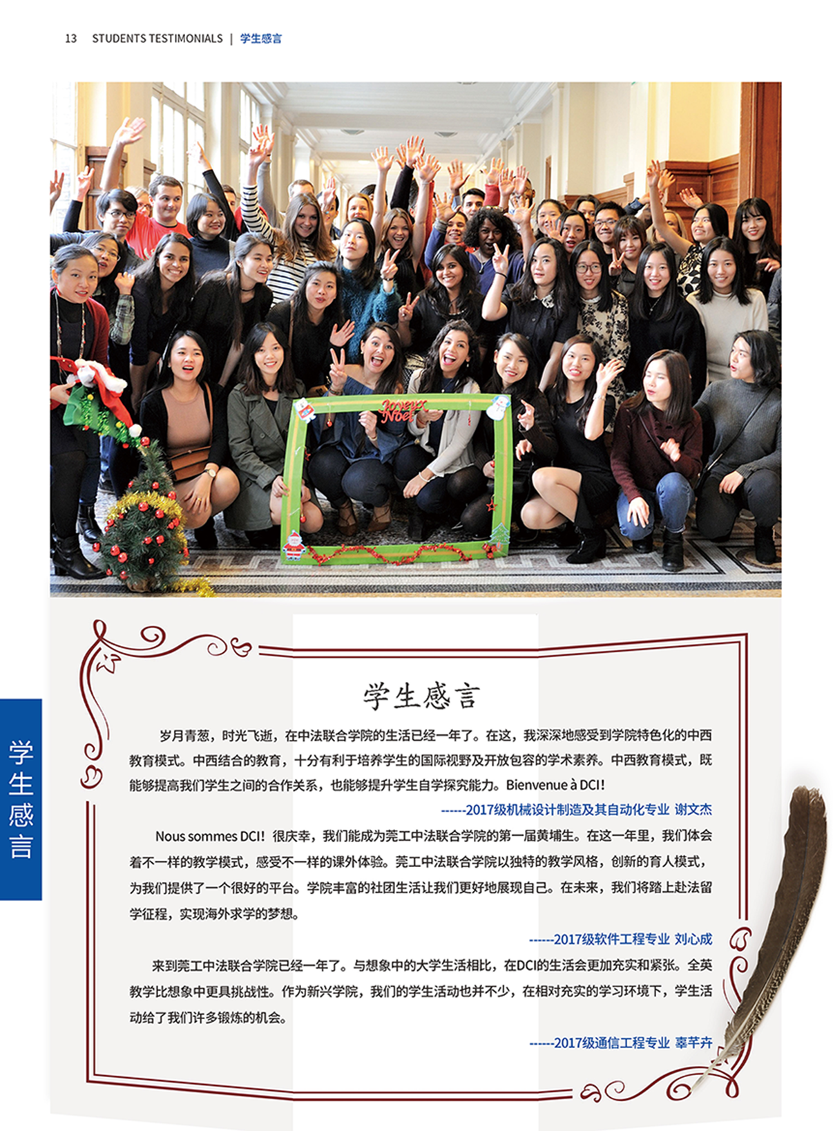 莞工sunbet官网学术氛围浓厚,学生组织完备,学生活动丰富。“中法工程师论坛”、“联合学院英语演讲比赛”、“学院迎春晚会”等活动拓展学生视野,提供展现自我的舞台。