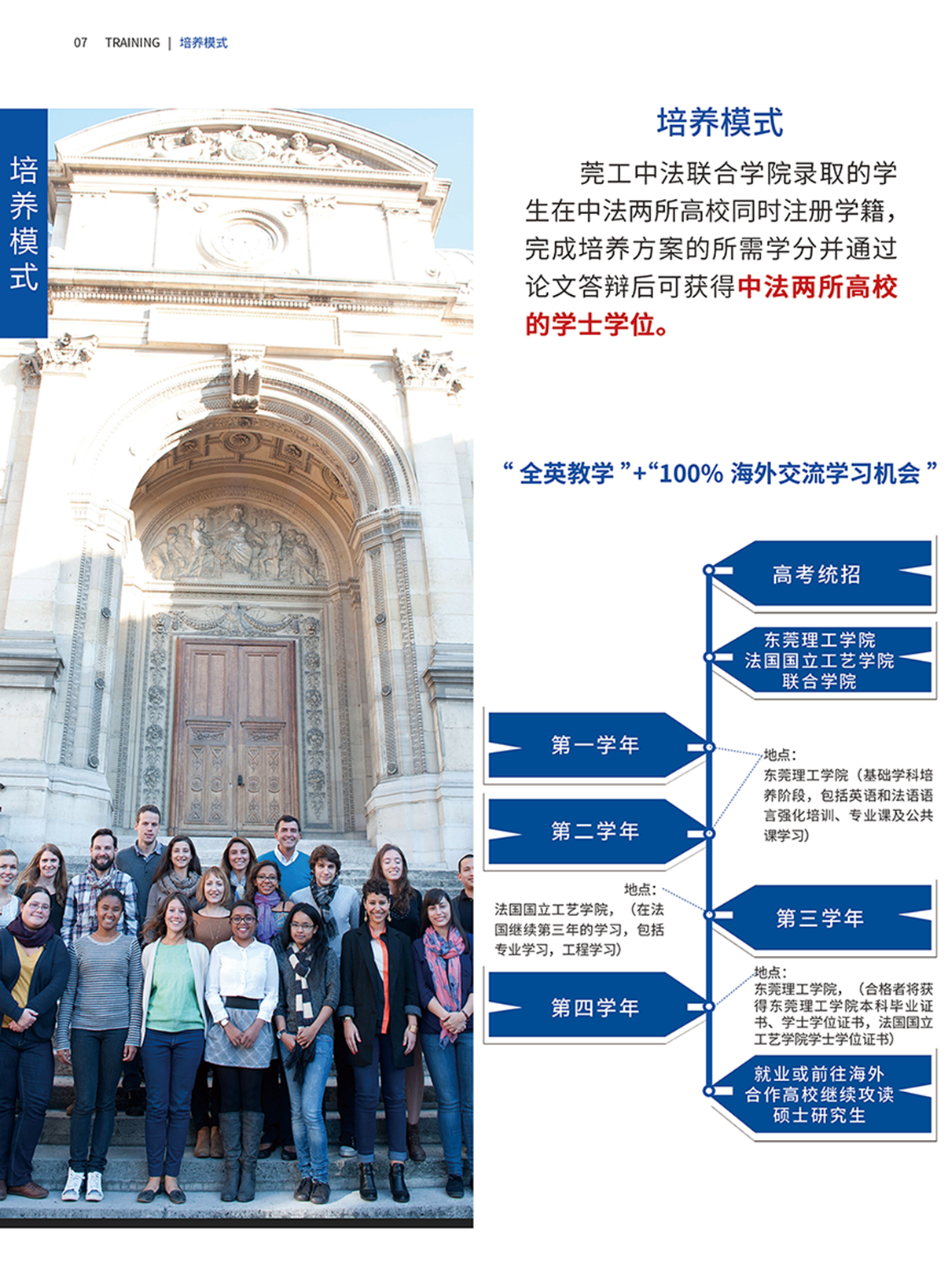 莞工sunbet官网采用法国精英教育模式,重视学生理论学习+实践能力的培养。“英语为基础,法语为特色”语言教学模式,通过为期两年浸泡式语言教学,使学生具备扎实听说读写技能。