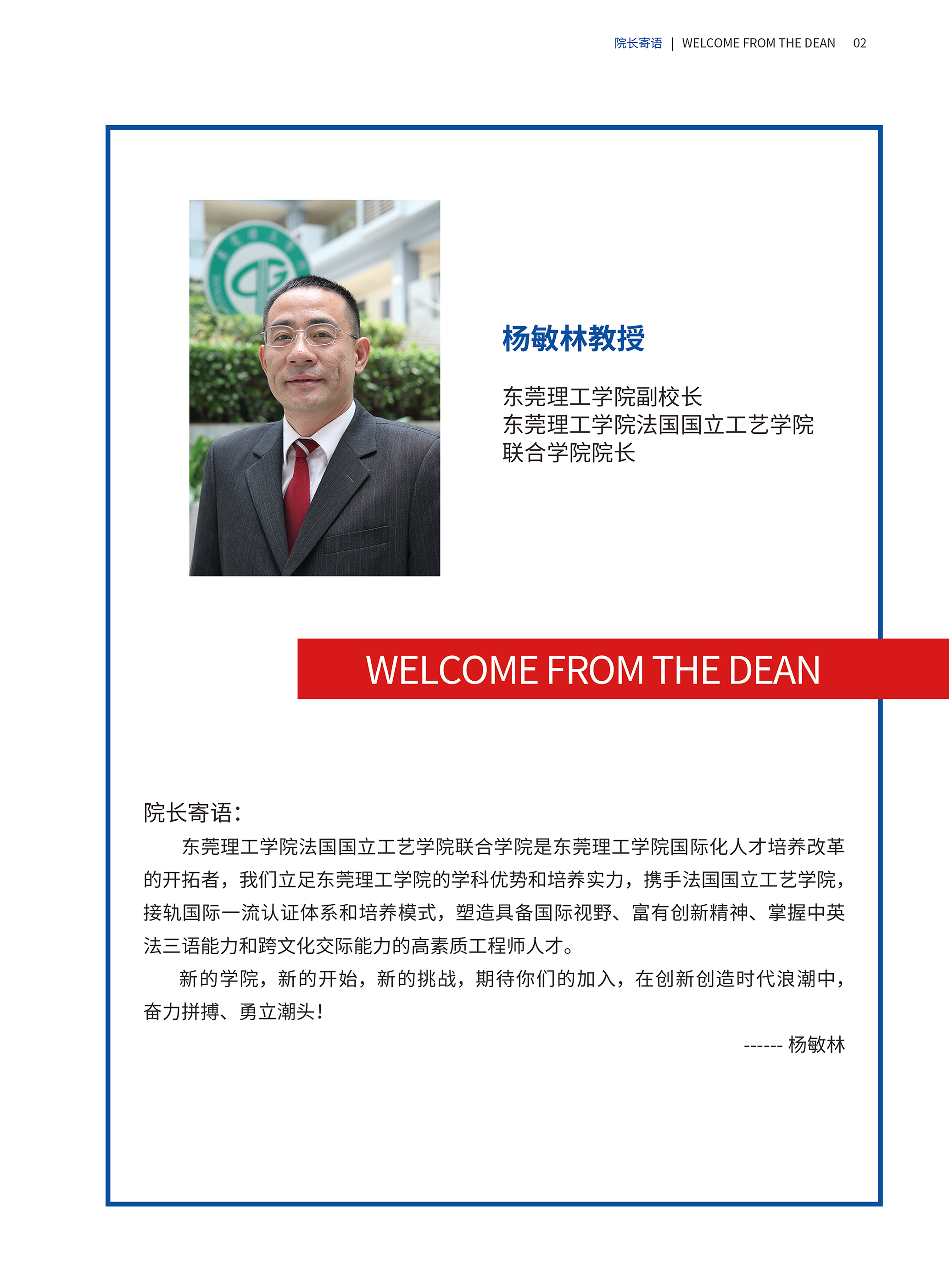 院长致辞 WELCOME FROM THE DEAN