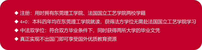 sunbet官网以东莞理工学院最具优势的国家一流专业为基础,融入法国国立工艺学院在工程师培养领域的悠久历史、成熟模式及卓越成效,结合粤港澳大湾区经济和产业需求,通过引进法国工程师教育理念和人才培养体系,形成既有自身特色又具国际化特征的工程教育模式,打造国际化工程师的摇篮,培养高素质国际化应用型创新人才。