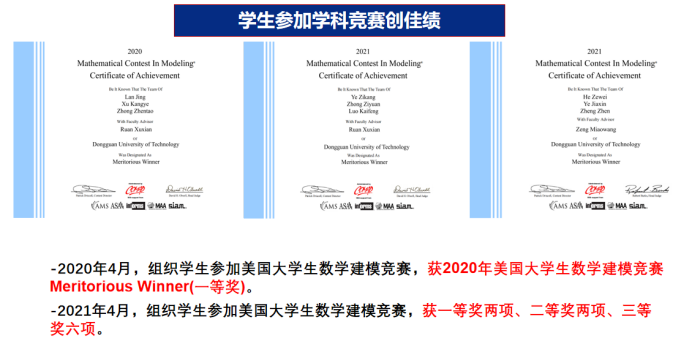 sunbet官网秉承“以赛促教,以赛促学”的教学理念,鼓励同学们积极参加学科竞赛,注重实践和创新能力培养。学院办学五年来,学生先后荣获海内外多个高水平赛事奖项。2020年,美国大学生数学建模竞赛一等奖;2021年,美国大学生数学建模竞赛一等奖2项、二等奖2项、三等奖6项;2019年,Robomaster全国大学生机器人大赛国际赛区邀请赛特等奖;2020年,Robomaster全国大学生机器人大赛一等奖;2021年,第二十届全国大学生机器人大赛RoboMaster2021机甲大师高校联盟赛(广东站)-3v3对抗赛亚军;2019年,第十五届“挑战杯”广东省大学生课外学术科技作品竞赛决赛二等奖等奖项。