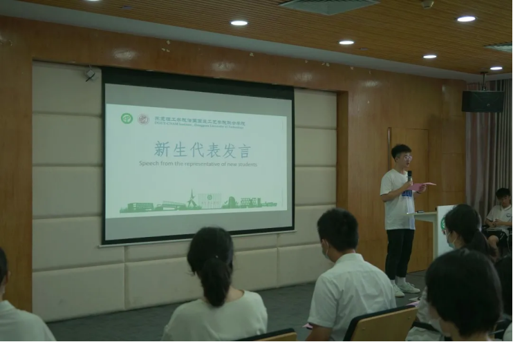 新生代表发言环节,2021级通信工程唐雷斌同学结合自身实际,分享了自身选择报读sunbet官网的心路历程。sunbet官网的国际师资力量、专业优势、浓厚学习氛围、考研申硕机会都深深吸引学子报读。新生代表的分享,引起了在场师生的强烈共鸣。