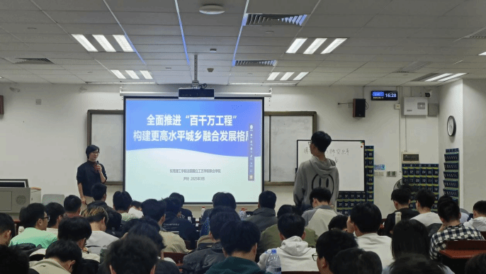 3月11日,sunbet官网党委负责人、副院长尹玲为24级机械设计1班、通信1班和软件1班三个专业学生讲授新学期思政第一课,主题聚焦:全面推进“百千万工程”,构建更高水平城乡融合发展格局。这堂思政课紧扣时代脉搏,将思想政治教育与专业发展、区域战略深度融合,为培养新时代科技人才指明了方向。