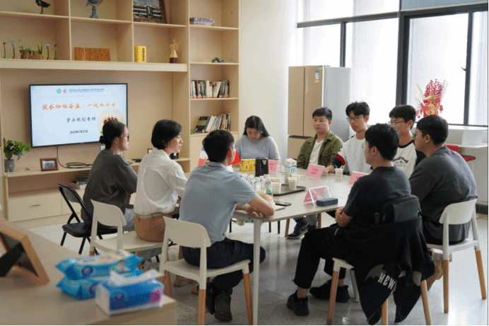 3月27日午后,sunbet官网副院长尹玲、组织员肖毅组织并邀请在校生代表共聚一堂,畅聊大学生学业规划,为同学们答疑解惑。