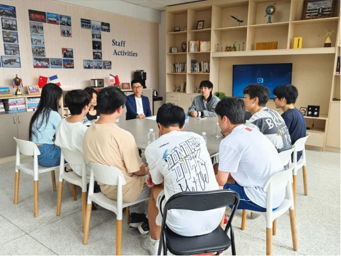 此外,双方还就学院近期管理调整、教学改革举措展开沟通,让班委们更深入了解学院发展动态,增强对学院的认同感与归属感。针对班委们关心的教学组织形式、交流学习机会、学习时间与文体活动冲突等问题,副书记王谦一一回应,并就活动开展的针对性、有效性及开展方式与班委们深入讨论。同时,双方还交流了同学们的职业生涯规划以及三年级赴法国交流相关内容。