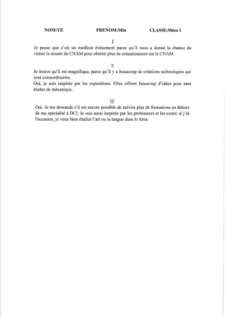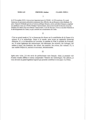 本次法语体验式教学作业题目围绕法国国立工艺学院(CNAM)225周年校庆,同学们参观CNAM巴黎校区及法国国立工艺学院科技工艺博物馆后的感想和思考而设计。题目如下:
