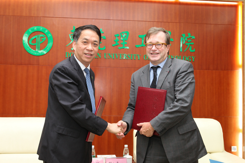 会谈双方还对合作工作进展进行了梳理,并就下一步工作安排达成了共识。座谈结束后,两校校长在参会人员的共同见证下,签署了两校合作中心创建和运作事宜的执行协议,并进行了揭牌仪式。据悉,该合作中心将获得CNAM授权在东莞开展学士学位和研究生学位教育资格,可面向社会开展;同时,中心还将获授权开展法国职业证书文凭目录(RNCP)内的职业资格认证培训。