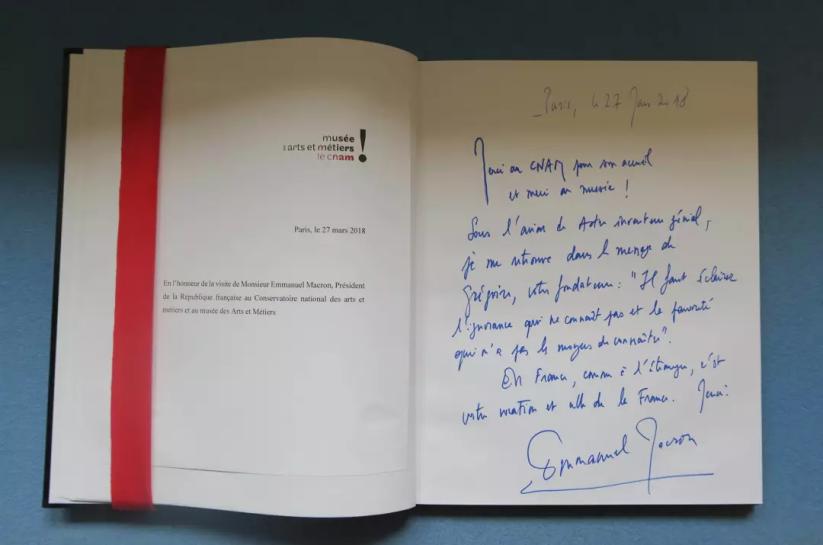 In his speech, President Macron fully recognized the outstanding contributions made by the French National Institute of Technology during the course of more than 220 years , and personally wrote an inscription to encourage the Conservatoire National des Arts et Métiers to continue to contribute to the teaching of French and international cooperation schools.
