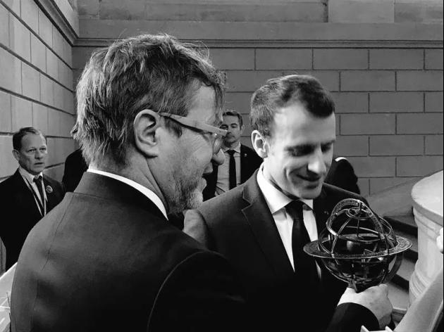 在法国国立工艺学院校长奥利维耶.法鸿的陪同下总统马克龙参观了法国国立工艺学院及其博物馆。