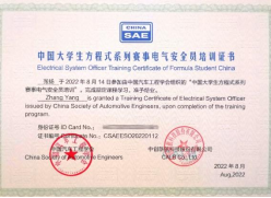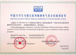 最后进行了电气安全员的考核,考核通过者予以证书。本次培训提高了同学们的安全意识。在一些技术方面的问题,如低压电池能否安装在侧箱、购买的身体保护电阻是否允许有200Ω的误差存在、BSPD信号能否通过pcb引线等疑问同学们都得到了逐一解答,让大家醍醐灌顶。我们也会根据此次培训经验改进车队,以更好的状态迎接2022年中国大学生方程式系列赛事!