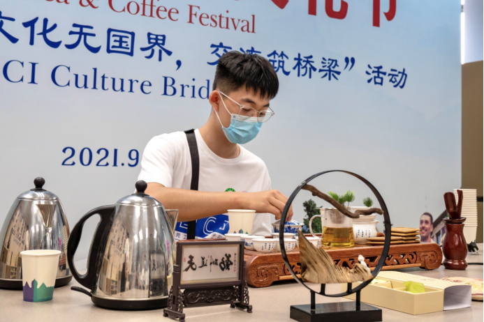 2021年9月12日下午,sunbet官网顺利举办了“文化无国界,交流筑桥梁”(DCI Culture Bridge)活动——第一届DCI茶与咖啡文化节(DCI Tea & Coffee Festival)。本次活动邀请了学院中外师生代表,通过全英文演讲的形式分享中国茶文化和外国咖啡文化,引导参加活动的同学们保持开放包容、互相尊重的心态、认识到不同文化之间的异同,更希望同学们在了解其他文化的同时,传承与创新中华民族优秀传统文化,增强对自身文化的礼敬和自豪,坚定文化自信。