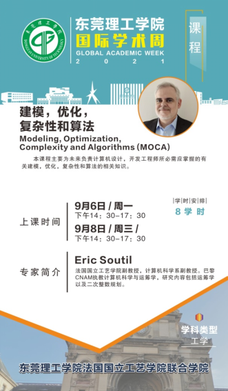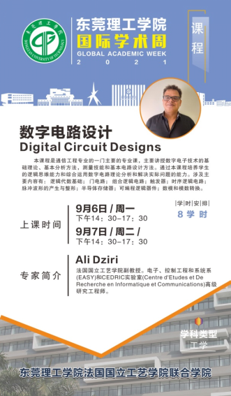 2021年9月初,2021东莞理工学院国际学术周 (Global Academic Week) 正式启动。作为学校国际教育合作的重要载体,我院高度重视并积极配合学校国际学术周的总体部署,与合作方法国国立工艺学院积极沟通,该校鼎力支持,精心挑选国际名师,为sunbet官网2021国际学术周准备了两场讲座和三门课程。国际学术周开设的课程、讲座深受广大学生的喜爱,学院同学纷纷报名。