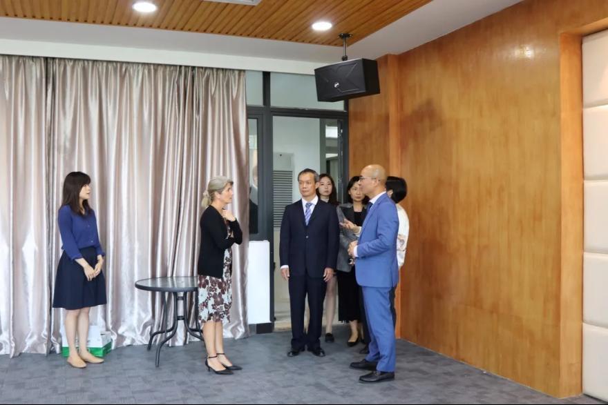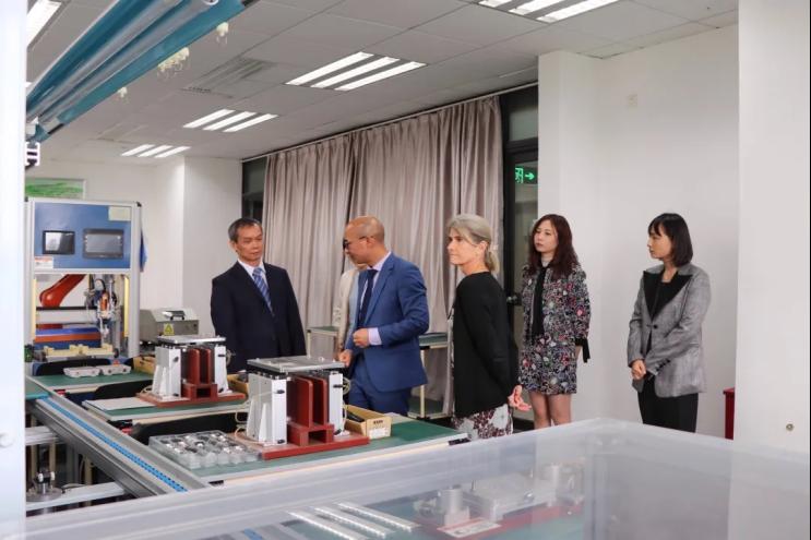 随后,在莞工sunbet官网相关负责人陪同下,法国驻广州总领事馆科技与高等教育领事裴安彤博士一行参观了学院多媒体课室、专业实验室等教学设施。裴领事对联合学院完善的教学设施,表示认可,对联合学院的办学模式及取得的成绩表示赞赏,并表明法领馆将一如既往的为莞工sunbet官网的发展提供应有的帮助。