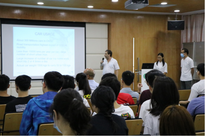 随后总经理Fabrice TAIEB为我院大四学生提供4个毕业设计课题和数个毕业实习岗位,在学院报告厅给同学们做了详细说明,我院2017级学生积极参与。