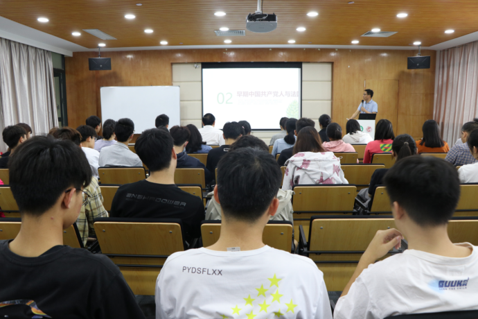 党课中,副院长韩涛结合自己在法国期间所见所闻,生动地讲述了周恩来、邓小平、蔡和森、陈毅、聂荣臻等老一辈革命家青年时期在法负笈求学的难忘岁月,引起在座师生的共鸣和感叹。这些早期共产党人受十月革命以及五四时期马克思主义传播的影响,自觉地把赴法勤工俭学当作深刻学习马克思主义的历史机遇,他们在留法勤工俭学运动中锻炼和成长起来,后来很多成为了党、国家和军队的早期领导骨干,为中国共产党的创建和发展提供了巨大的助力。