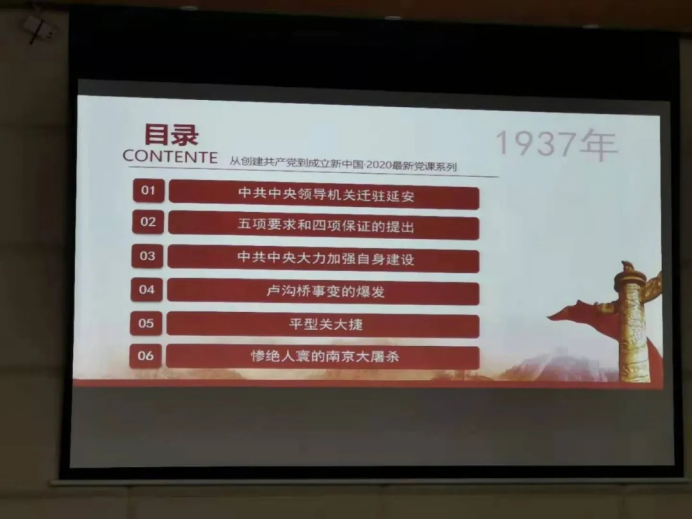 课上,王玉老师将全面抗战路线分为六个部分进行讲述:从中共中央领导机关迁驻延安与国民党合作,到卢沟桥七七事变的爆发......他为积极分子们深刻阐述了中国共产党发展的伟大征程中所体现出来的先进思想和不朽精神。