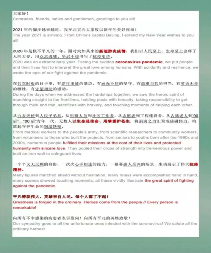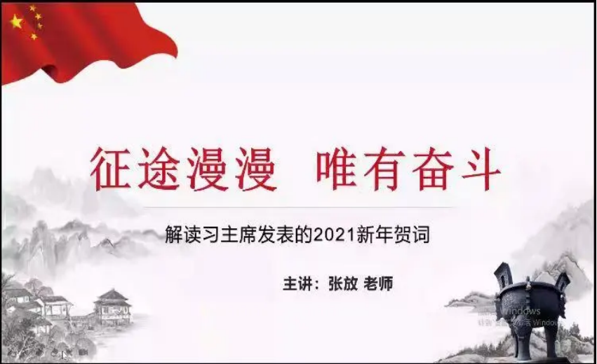 随后,张放老师通过对贺词中重点字句的知识拓展,带着同学们用中英双语一同学习2021年习近平主席新年贺词