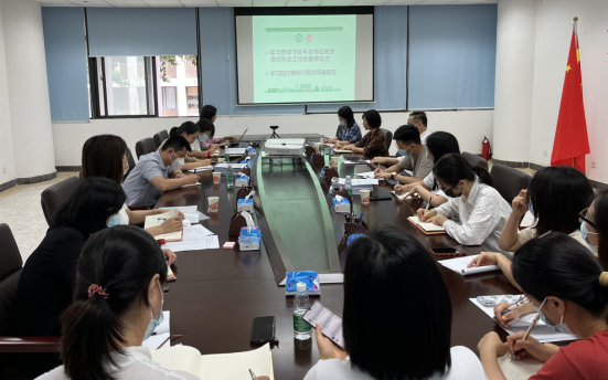 会议第三部分学习了习近平总书记在南京大学建校120周年之际给留学归国青年学者的回信,和在中国人民大学考察时的重要讲话,习近平总书记勉励青年们以报效国家、服务人民为自觉追求,在坚定文化自信、讲好中国故事上争做表率,为全面建设社会主义现代化国家、实现中华民族伟大复兴的中国梦积极贡献智慧和力量。
