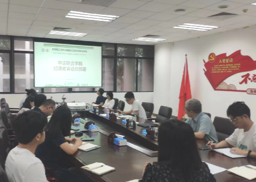 会上,党委负责人王谦传达了东莞理工学院2023年纪律教育学习月动员部署会精神和要求,并就《东莞理工学院 2023 年纪律教育学习月活动方案》开展了纪律教育学习月工作部署。他强调,我们要不断增强政治判断力、政治领悟力、政治执行力,更加深刻认识到“两个维护”是最根本的政治纪律和政治规矩,更加自觉地忠诚拥护“两个确立”,不断增强纪律意识、规矩意识,增强拒腐防变和抵御风险能力,凝心聚力,担当作为,切实把纪律教育学习成果转化为推动学校、学院高质量跃升发展的工作动力和实绩实效。