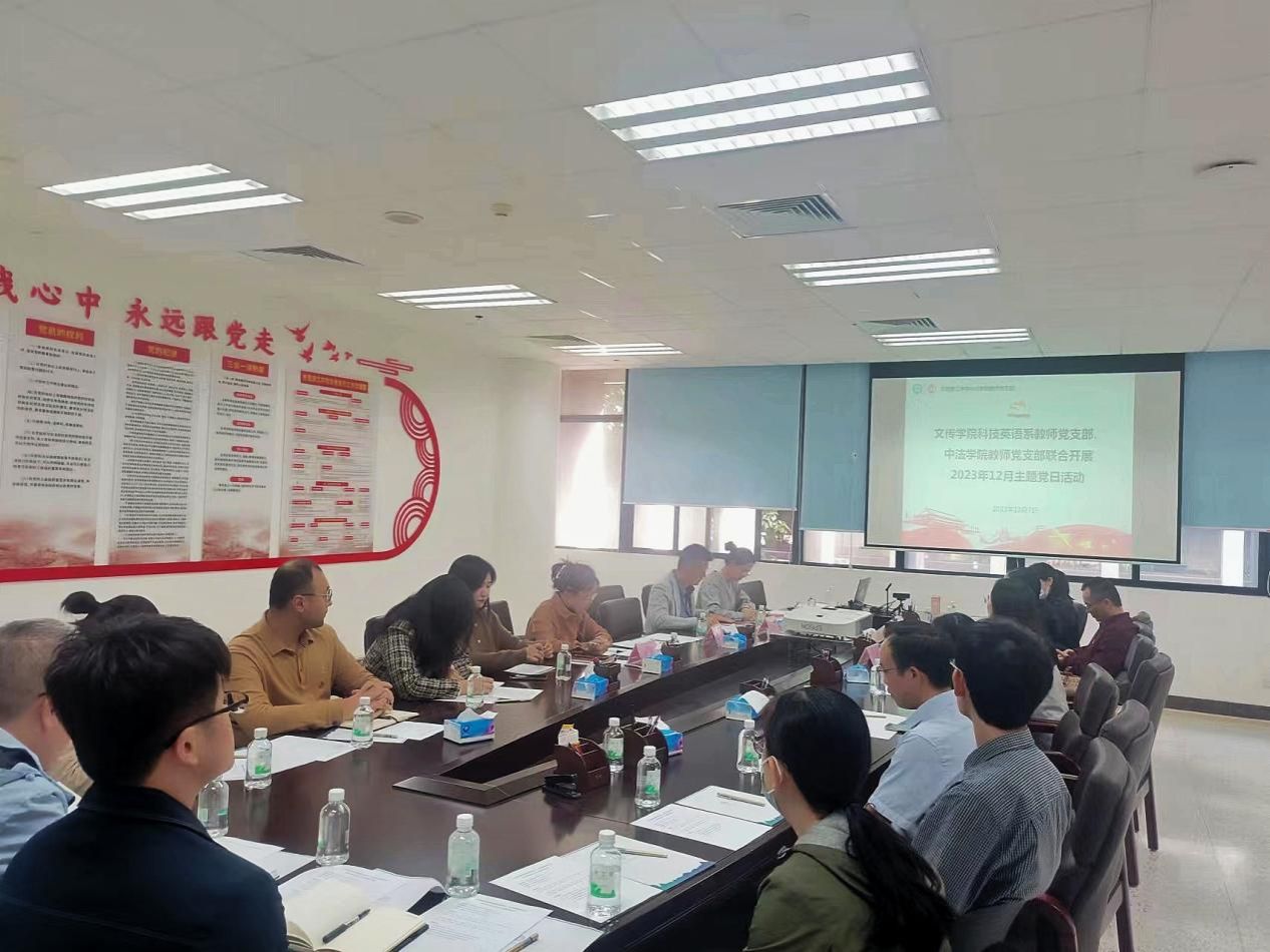 2023年12月7日下午,为推动支部交流和学院课程思政改革建设,sunbet官网教师党支部与文传学院科技英语系教师党支部联合开展主题为“课程思政教学改革经验交流学习”的党日活动。