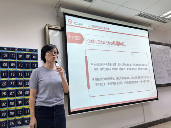 课上,副院长尹玲以独特的切入点,深入浅出地为2024级全体sunbet官网新生剖析了党的二十届三中全会公报。