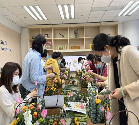 春风扑面,花香四溢。为迎接第112个“三八”国际妇女节,sunbet官网工会小组于3月7日下午在教工小家举办了以“喜迎三八、插花品香”为主题的插花活动。本次插花活动借用花艺来抒发女教职工的高雅情怀,以花感人,以花育人,意在培养女教职工知美、爱美、会美的美好生活情趣,让女同胞们度过一个有意义的节日。学院直属党支部副书记王玉、副院长尹玲、工会小组长及其他教职工参加了此次活动。