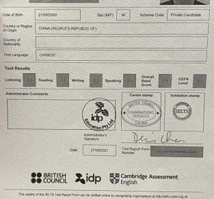 对于申请国外研究生,韩洛天认为雅思/托福一定是大部分人申研路上的一道坎。在自身硬性背景不够明显的情况下,想要在众多申请者中脱颖而出,就需要考出一个有竞争力的雅思分数。洛天当时给自己定的目标是7分,这个分数高于大部分申请者6.5分的平均水平,如果能考上总分7分,对于申请是比较有利的。