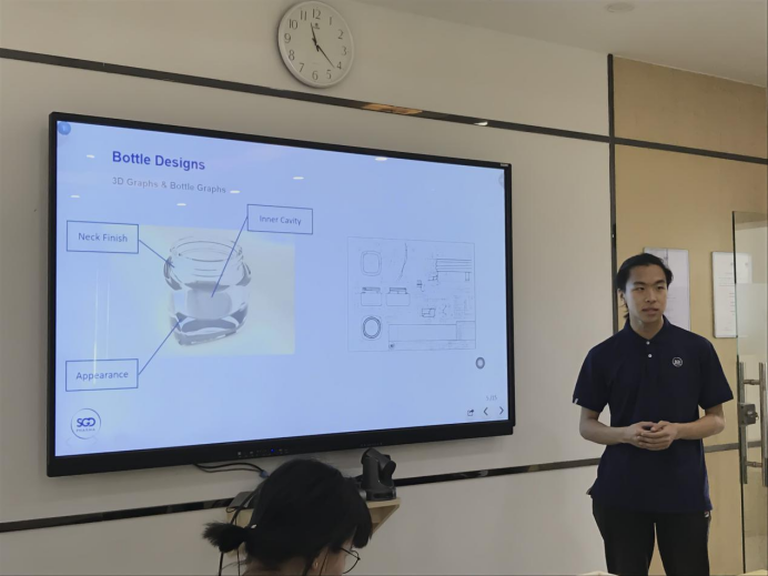 “发现问题,并解决它,使工作完成的同时,个人成长得到进步。在实习岗位中,我学到了如何熟练地使用NX进行工程图绘图,三维模型设计以及装配体结构分析以及玻璃瓶成型工艺技术。在实习的工作过程中,我会善于发现问题,试图解决问题,锻炼了我的思能力,机械设计技术和熟练使用专业相关软件的能力。”---凌志桢