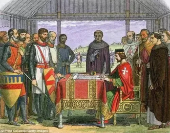 国王在《大宪章》上按下印章,以上帝的名义承诺不得任意征税