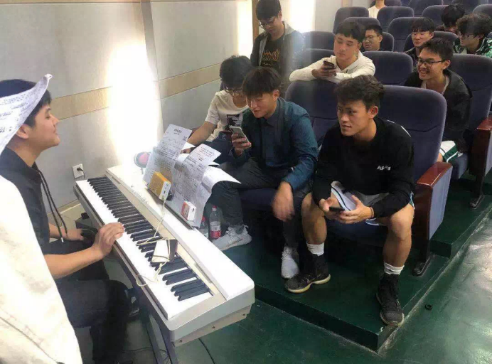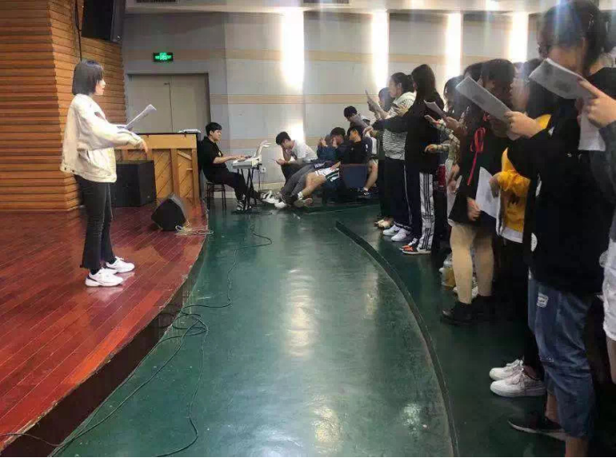 在最初排练的日子里,声音的效果还停留在同学们的个人音乐才华的自由表达状态,合而不齐。但在音乐指导循循善诱的引导下,合唱团的进步日渐显著。