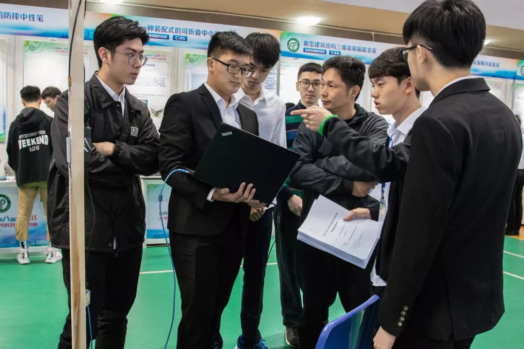 2019年3月24日,明明是周日,松山湖校区的体育馆却挤满了人?因为,东莞理工学院第八届挑战杯大学生课外学术科技作品竞赛在这儿举行!